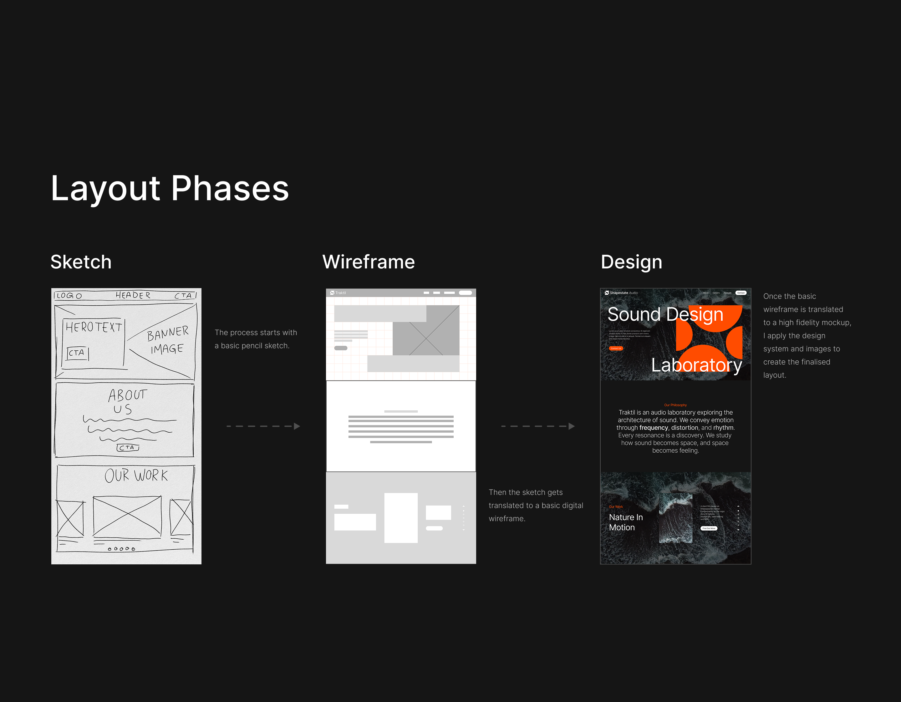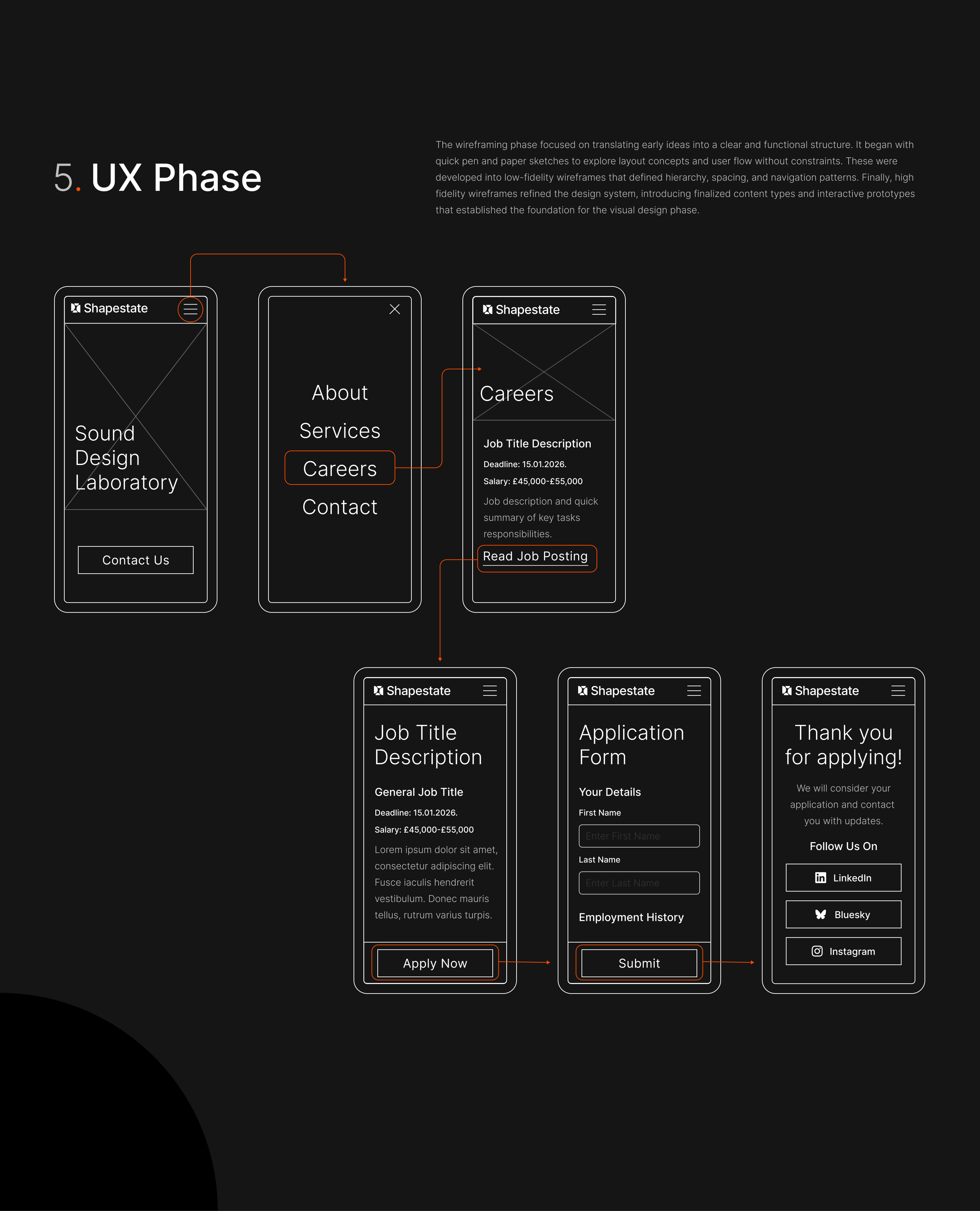 Shapestate is an experimental design project exploring how sound can be translated into a digital visual experience. The goal was to create a conceptual website for a sound laboratory, focusing on brand identity, UX structure, and a clear design process. Through logo development, a bold visual language, and a structured wireframing approach, the project showcases how abstract themes like rhythm, frequency, and modulation can shape a cohesive and immersive interface.